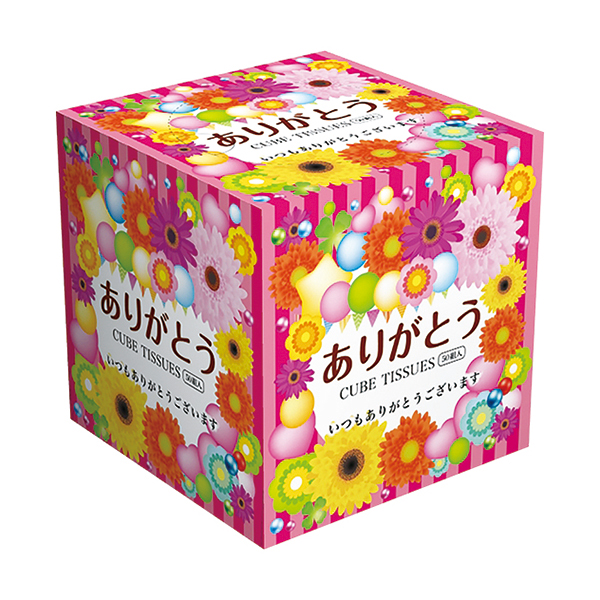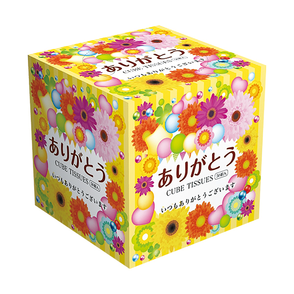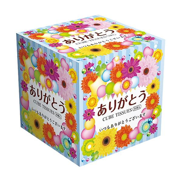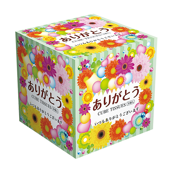 ありがとうのメッセージを包んだキューブボックスティッシュ