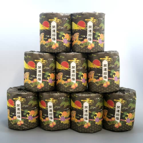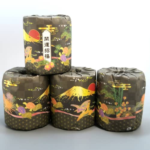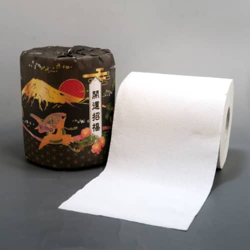 様々な縁起物が描かれた高級感のあるトイレットペーパー
