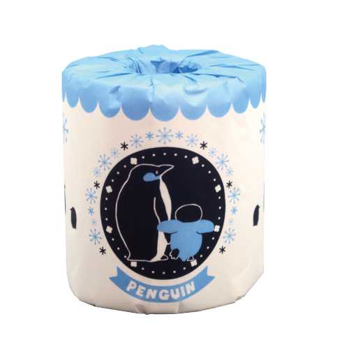 可愛いペンギンの親子のイラストが描かれたトイレットペーパー