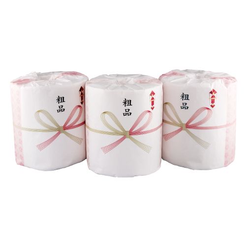 シンプルなデザインの「粗品」トイレットペーパー